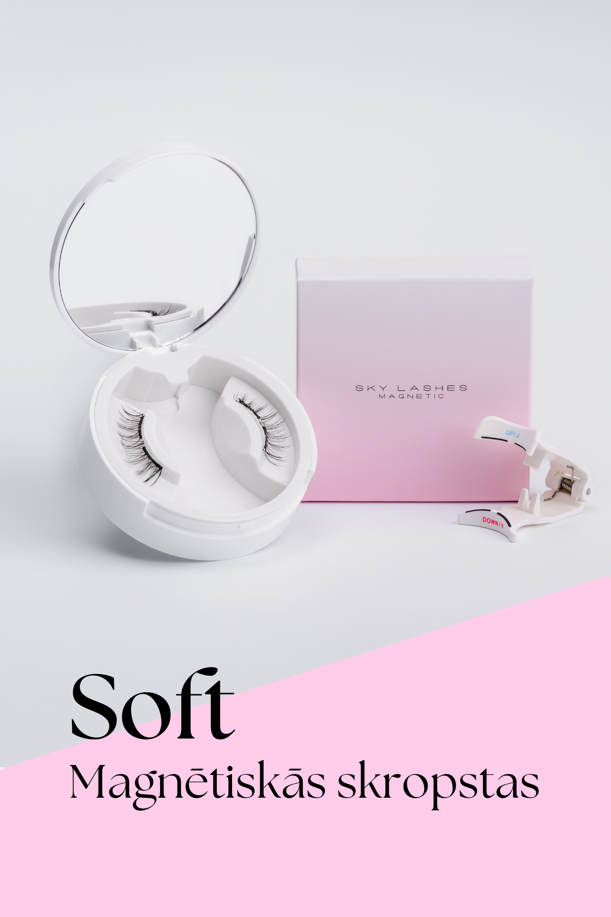 Maigi paceliet plakstiņu ar aplikatora palīdzību un pārliecinieties, ka magnētiskās skropstas atrodas cieši pie jūsu dabisko skropstu līnijas.